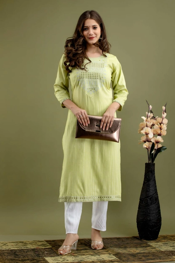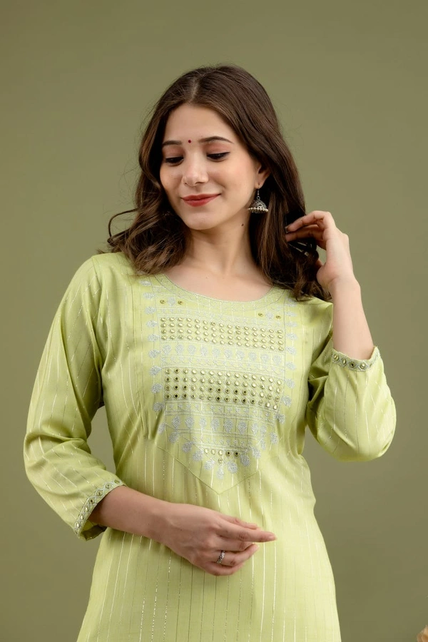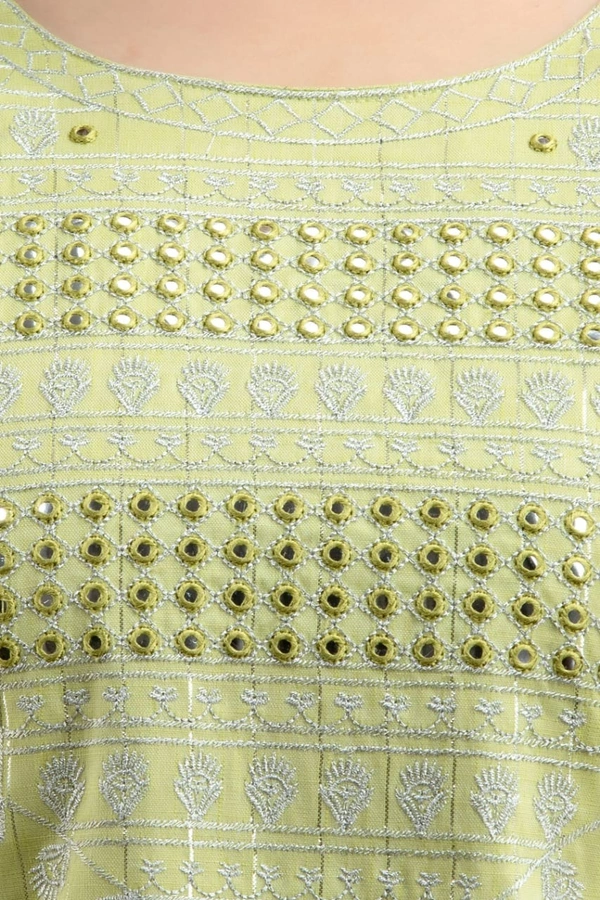 -Beautiful Kurti With Heavy Embroidery Mirror On York and sleeves And Pant