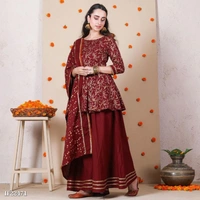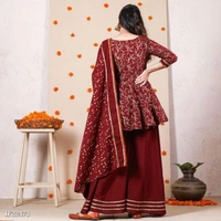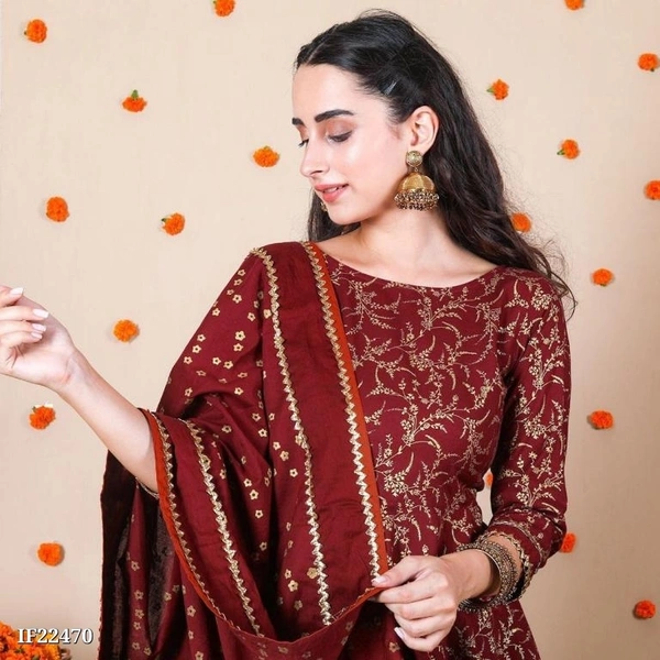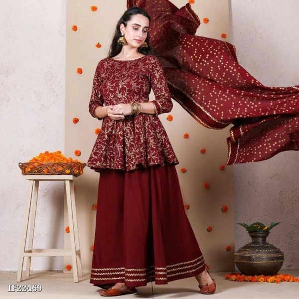 Beautiful Rayon Printed Kurta 3/4th Skeeves With Rayon Skirt And Cotton Dupatta Set *