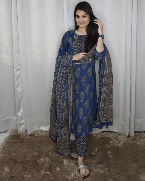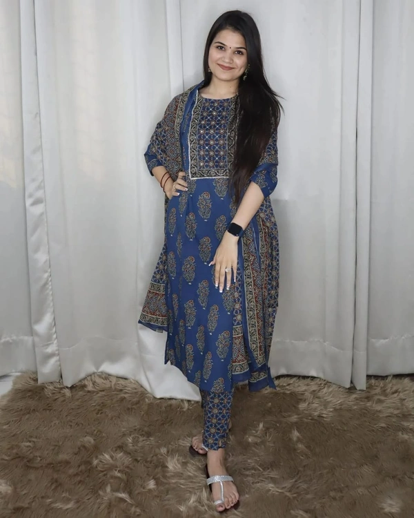 Katha & sequence, gota work on yoke. Pure cotton pant & full duppttaa