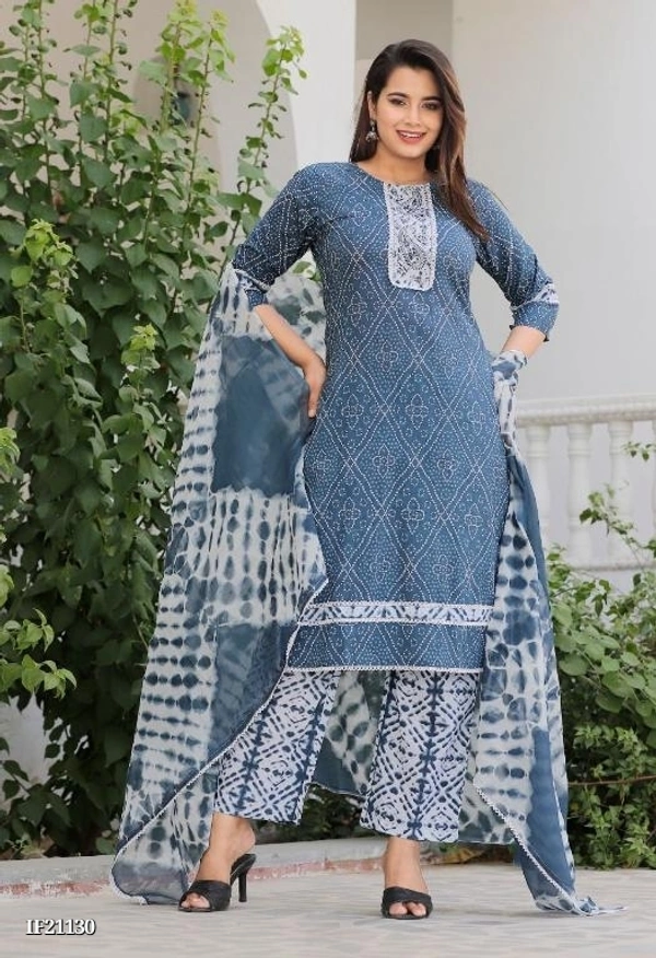 Lahariya Print Casual Kurta And Pant Paired With Cotton Mul Dupatta Set With Front Open Button*