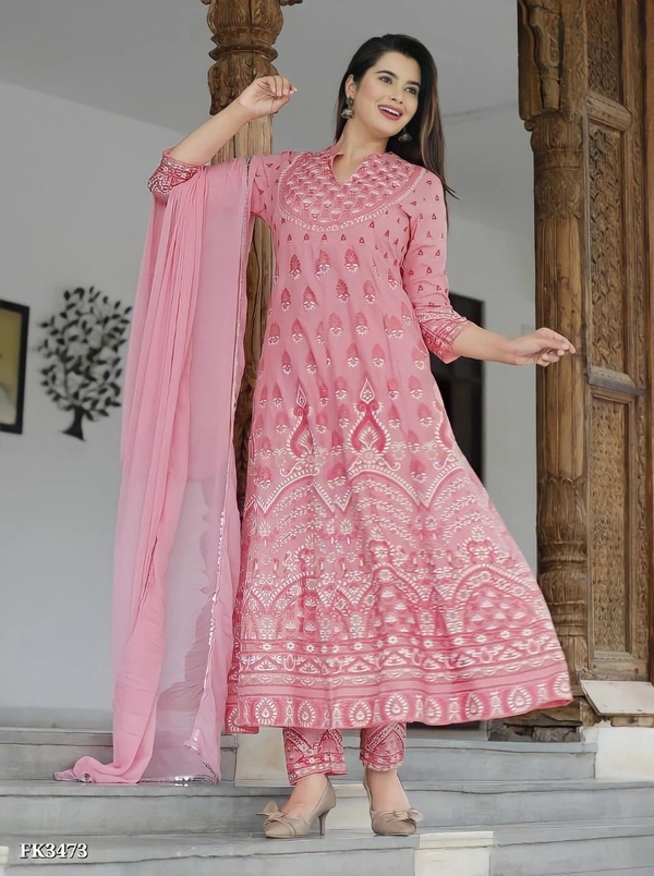 AAA+ PREMIUM HEAVY RAYON ANARKALI KURTI PANT WITH DUPATTA
