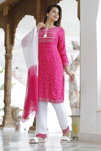 👗Rayon fabric kurti with pant and dupatta