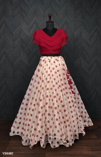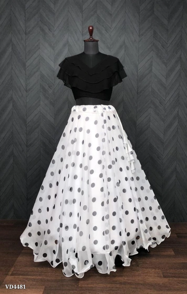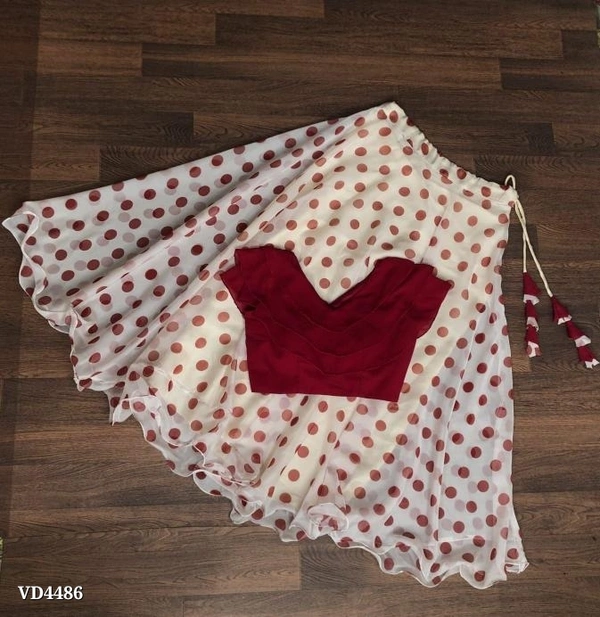 π*Dot Print Lehenga Is the Fashion And in Top Trending, It will Stitch with Wire-Picco-Work gives flaired functioned look With Readymade Faux-Georgette Blouse
