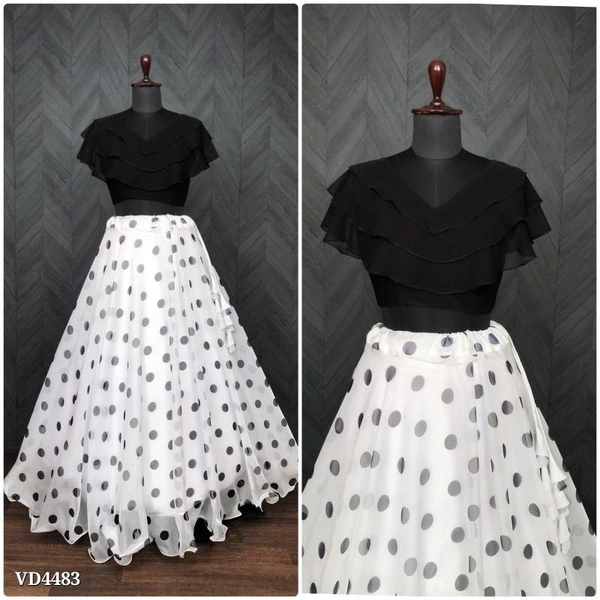 π*Dot Print Lehenga Is the Fashion And in Top Trending, It will Stitch with Wire-Picco-Work gives flaired functioned look With Readymade Faux-Georgette Blouse