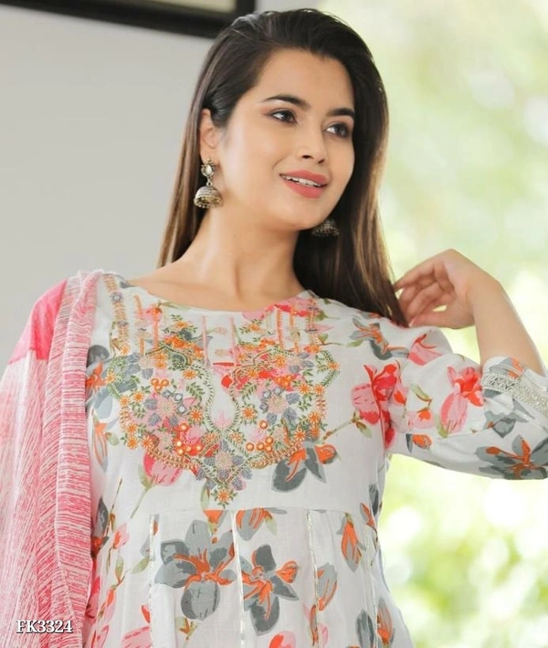 Reyon fabric fine quality kurti neck heavy embroidery work nd gotta work with Dupptta and pent m to XXL size available