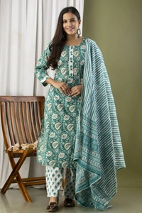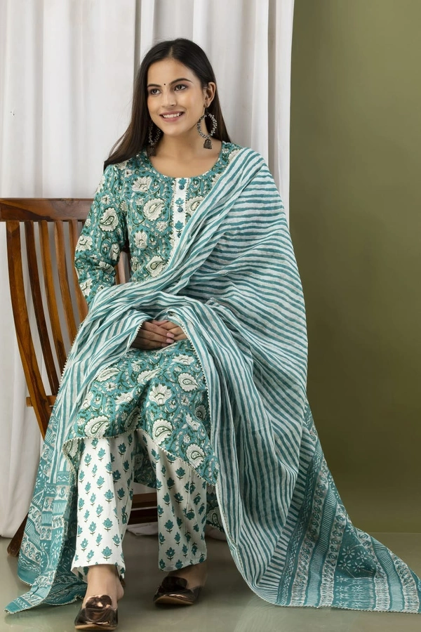 1️⃣3️⃣Straight Kurti  With  Pant and mulmul Dupatta