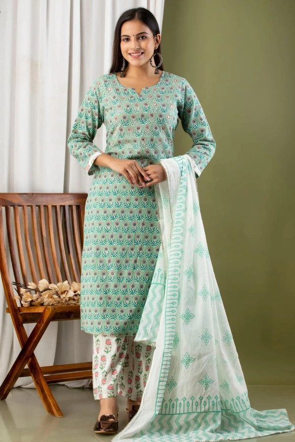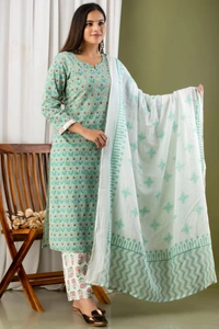 1️⃣1️⃣Straight Kurti  With  Pant and mulmul Dupatta