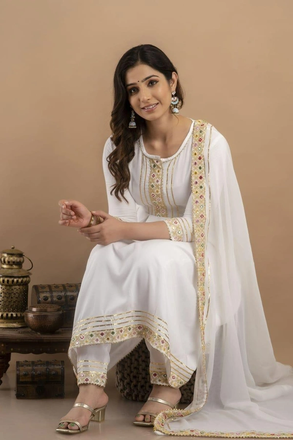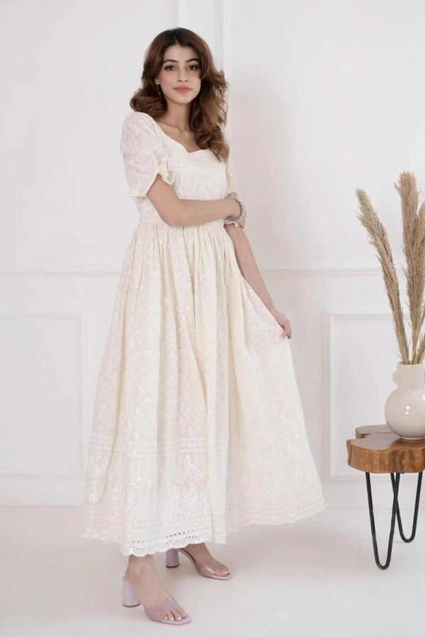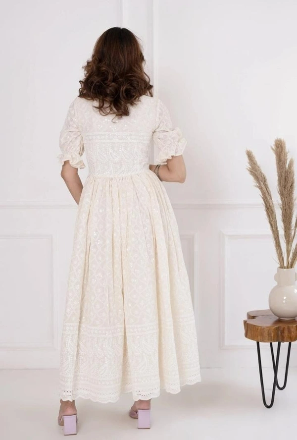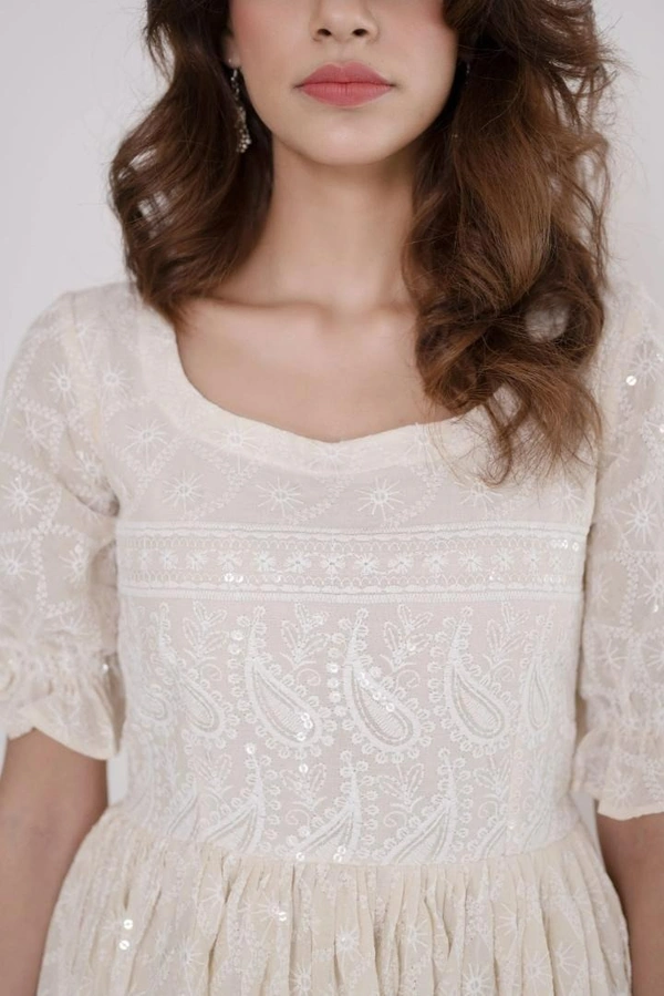 white chickenkari dress with round neck and baloon sleeves inner attached